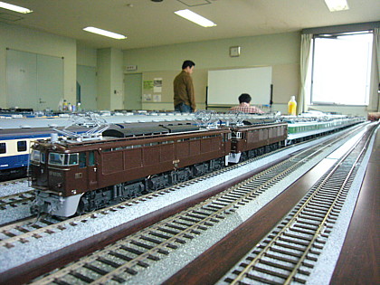 左)エンドウの真鍮キットを組み立てたEF63形2両は、ゲスト佐々木氏の作品。他にも、ひかり模型製も含め6両のEF63形を持ち込まれました。
