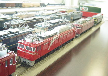 右)まさにARC鉄道博物館。電気機関車群、そのままでは全て並べきれず、観賞目的で持ち込まれたエンドウ製直線線路も用意されたほどでした。