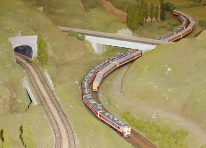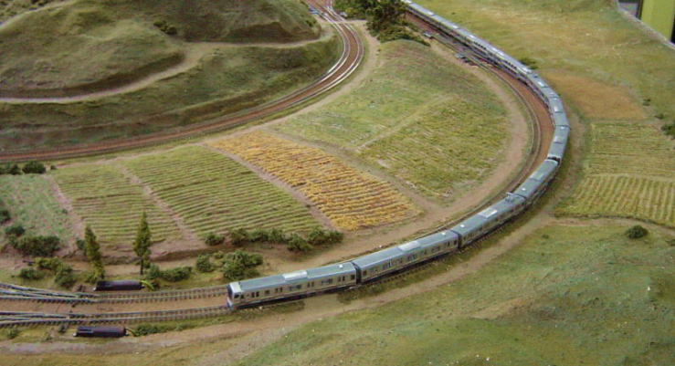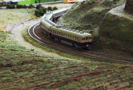 右)坂田金時、蝦夷地遠征:165系が邪魔だが、ちょっと北海道っぽい一角。大カーブの醸す雰囲気が北の大地を彷彿とさせる。