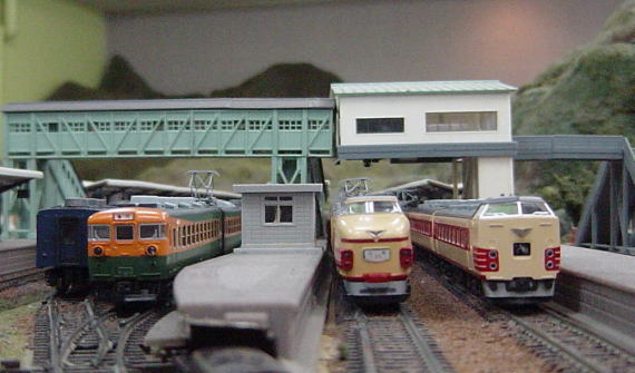 右)新旧「とき」の離合:雨樋をかすめるようなすれ違い…実車の離合シーンって、確かにこんな感じです(^o^)
